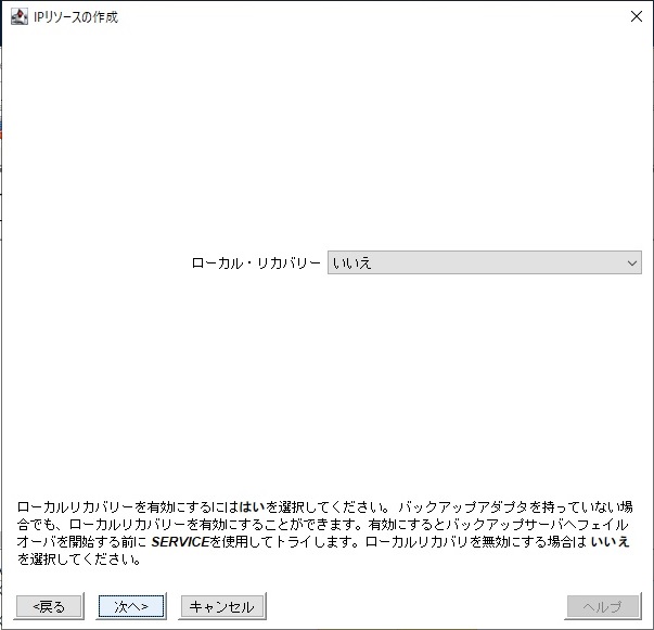 ローカルリカバリーは1号機と同様に「いいえ」のまま次に進めます。